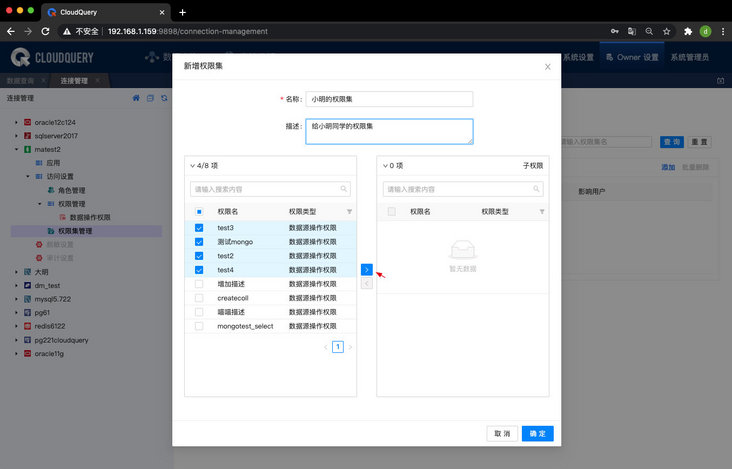 - 新增最小权限集功能,最小权限集是伴随连接而自动生成、伴随连接删除自动删除、具备最基本角色的最小公共权限。最小权限集可以帮助管理者快速赋予用户权限。