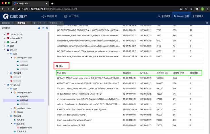 4、支持慢 SQL 排行功能。可帮助管理员对平均耗时较长的 SQL 进行筛选,排查相关有问题的 SQL。