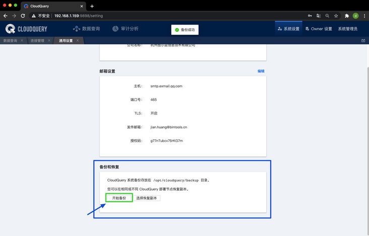 - 恢复功能:支持用户在 CloudQuery 的不同部署节点进行数据恢复,但目前仅限相同版本。