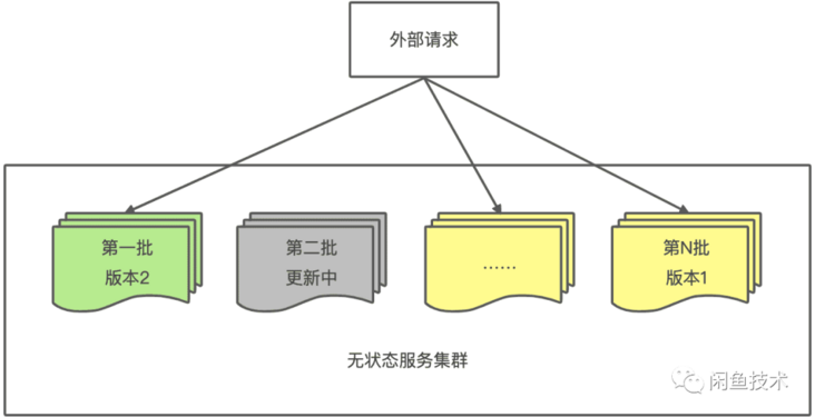 - 渐进更新,新请求逐步切换到新服务上处理,旧服务处理完存量请求后销毁。适合短时间保持状态的场景(例如游戏服务、实时音视频通讯服务)。
