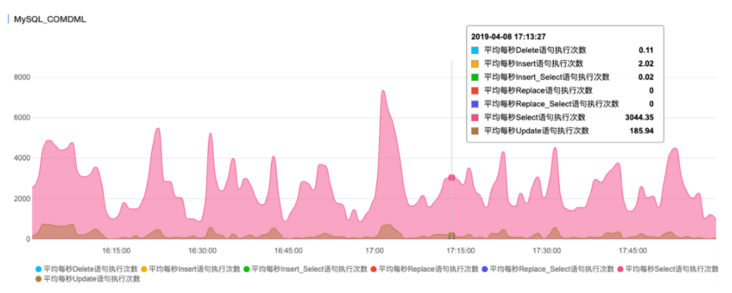 1)查看延迟期间主库是否有一些批处理/大事务操作,主库业务业务请求上涨或者有批量的更新操作。对此,我们主要观察主实例的QPS/TPS监控、MySQL_COMDML和日志读写的监控指标。