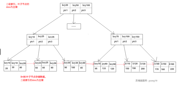 - B树的检索的过程相当于对范围内的每个节点的关键字做二分查找,可能还没有到达叶子节点,检索就结束了。而B+树的检索效率就很稳定了,任何查找都是从根节点到叶子节点的过程,叶子节点的顺序检索很明显。