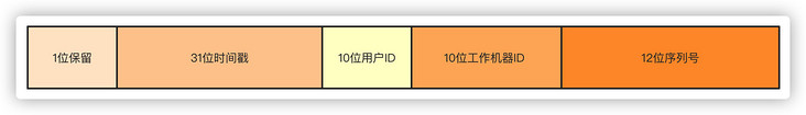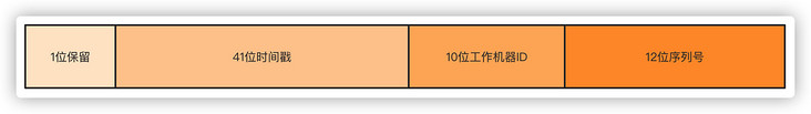 第一位不使用,默认都是0,41位时间戳精确到毫秒,可以容纳69年的时间,10位工作机器ID高5位是数据中心ID,低5位是节点ID,12位序列号每个节点每毫秒累加,累计可以达到2^12 4096个ID。