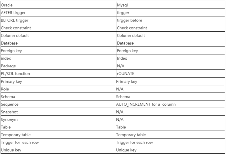 就模式对象,Oracle和MySQL存储诸多的相似,但也有一些不同