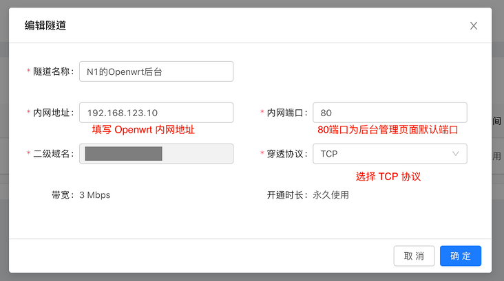内网地址:填写内网的 Openwrt 的地址