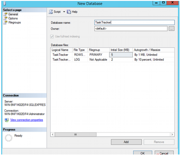 开展数据库取名,这里叫“TaskTracker”,随后点一下“OK”,即完成创建: