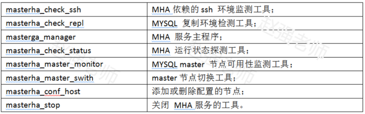 MHA会提供诸多工具程序,其常见的如下所示: