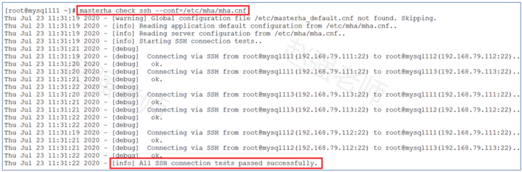 masterha_check_ssh --conf=/etc/mha/mha.cnf