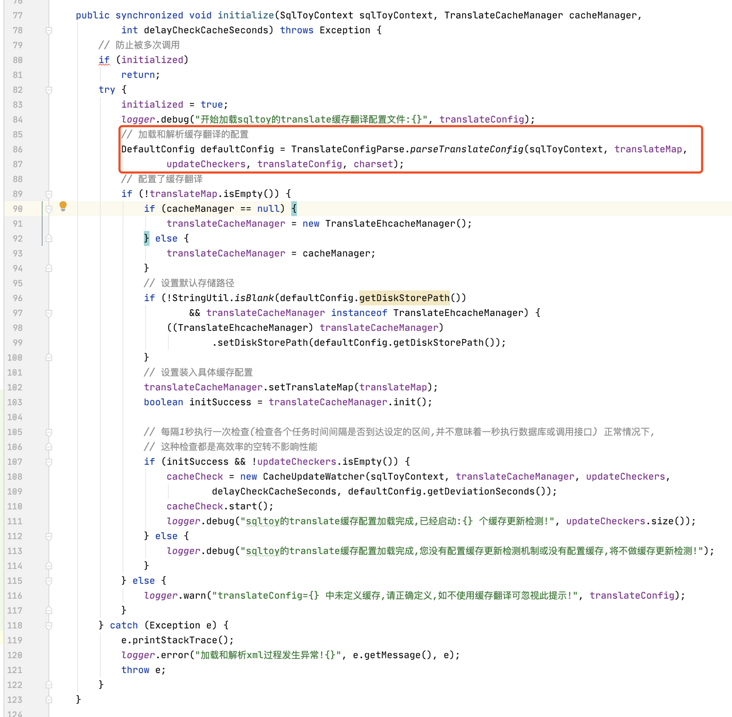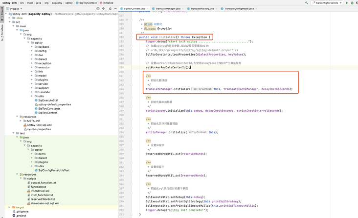 在 SqlToyContext.initialize 初始化方法中找到翻译器的初始化方法,点进去。