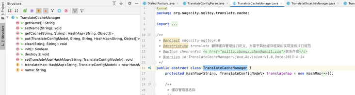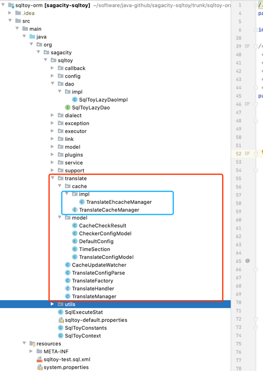 org.sagacity.sqltoy.SqlToyContext 文件就是 sqltoy 框架加载主入口,这里加载的配置有:sqlToy 配置解析插件、实体对象管理器、翻译器插件、缓存管理器、统一公共字段赋值处理、延时检测时长、数据库方言参数、es的地址配置等等。然后翻译器插件就是缓存翻译。