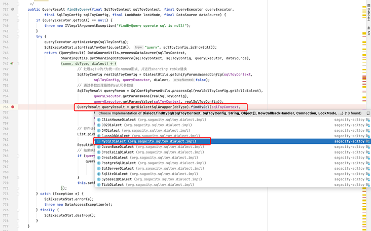 DialectFactory.getInstance().findByQuery()方法就又进入了 AOP 小节的讲的 findByQuery() 方法。
