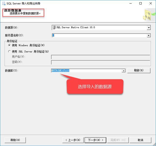然后在弹出的数据库里面选择导入的数据源和目标,选择导入的数据源界面如下所示。
