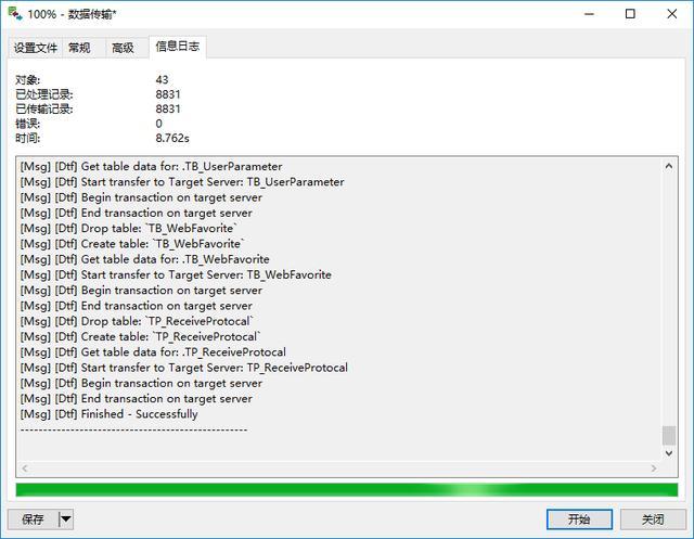 执行数据传输操作,顺利完成,非常强大和方便,而且没有任何错误。如下界面所示。