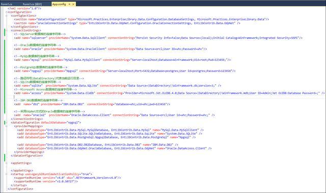 前段时间,在和一个做了十年的顶级叫故事聊天,他说,在开发项目的时候,往往碰到的不同的需求情况,兼容不同类型的数据库是我们项目以不变应万变的举措之一,在底层能够兼容多种数据库会使得我们开发不同类型的项目得心应手,如果配合快速的框架支持,那更是锦上添花的举措。他开发的项目或者框架,采用了微软企业库Enterprise Library的模块,倾向于支持多种数据库,也为我们开发不同类型的项目提供非常方便、快速、统一的处理方式。一般常规的数据库包括MS Server、Oracle、MySQL、PostgreSQL、SQLite、DB2、国产达梦等数据库