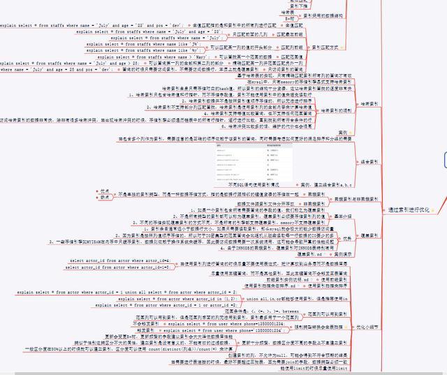 在一开始的时候,我也说了,常规的sql编写,其实在笔试中考察比较多,这个就是个人的一个技术能力的考察了,不是说能够取巧的,但是对于优化,更多的是理论的考察,那这些怎么办呢?关于mysql索引优化的相关知识图谱奉上
