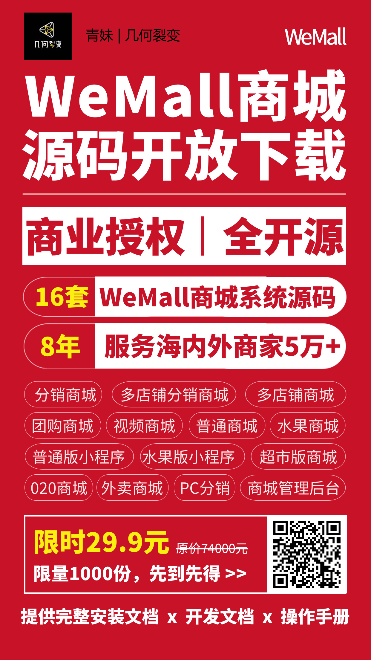 为助力企业线上经营,我们做了一个重要决定:WeMall商城16套商用源码29.9元全部开源!