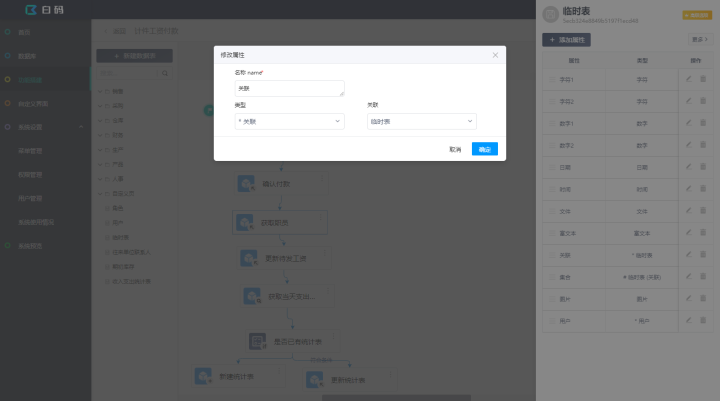 有时候一个数据集往往无法完成一些业务功能,白码还支持数据集关联,通过数据集关联可完成更多的业务需求。