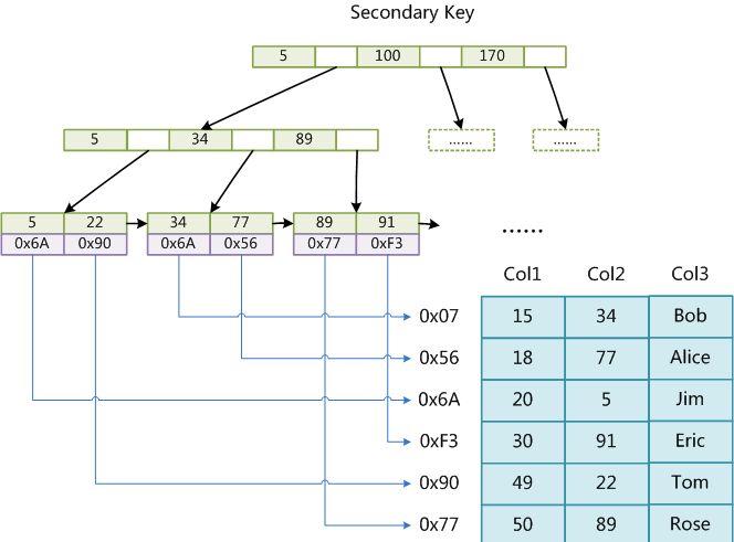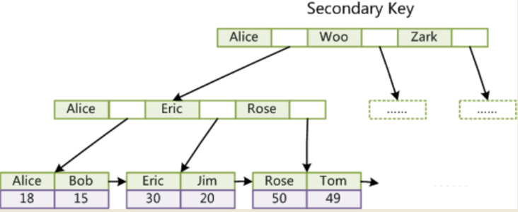 辅助索引:以另一字段索引到主键