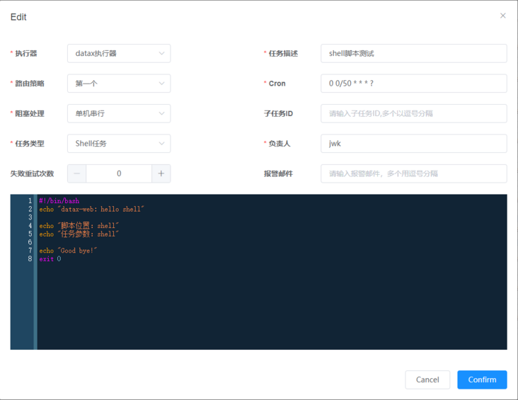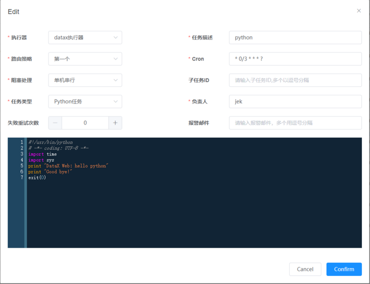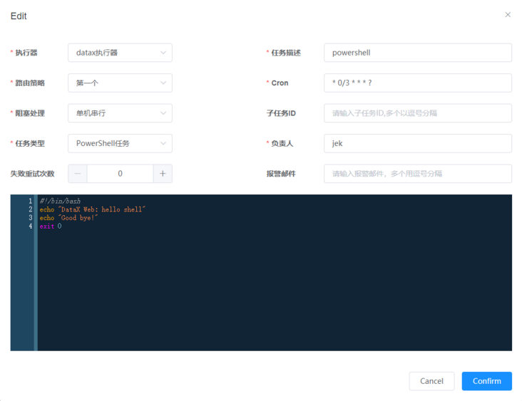 - 任务类型:目前支持DataX任务、Shell任务、Python任务、PowerShell任务;