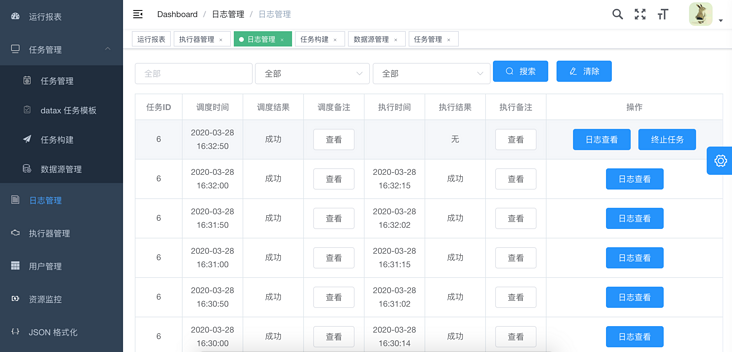 - 3、Web实时查看抽取日志,类似Jenkins的日志控制台输出功能;