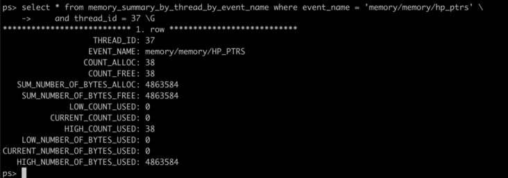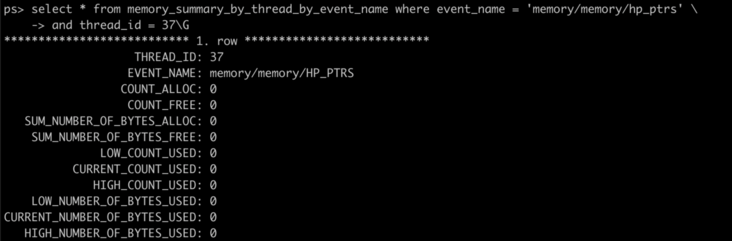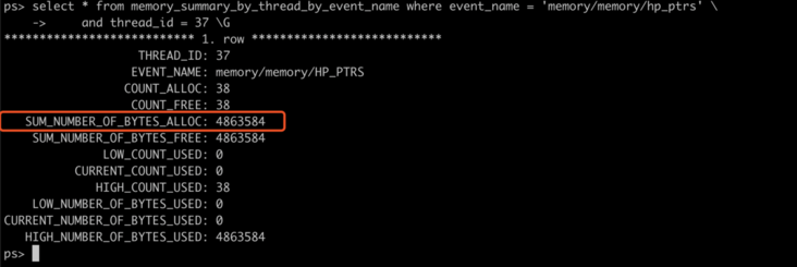 下面我们另起一个 session,用 performance_schema 对内存进行观察: