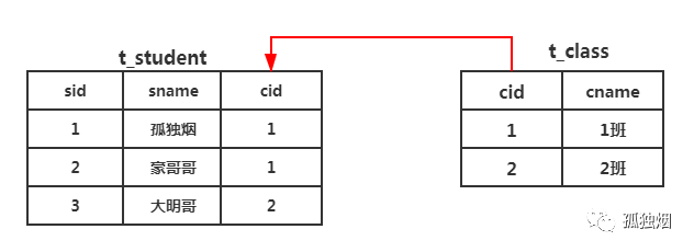 SELECT *FROM t_student t1, ( SELECT cid FROM t_class WHERE cname = '1班' ) t2WHERE t1.cid = t2.cid