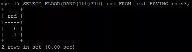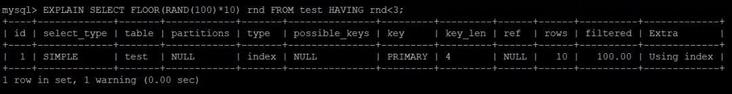 SELECT FLOOR(RAND(100)*10) rnd FROM test HAVING rnd再再再 EXPLAIN 一波
