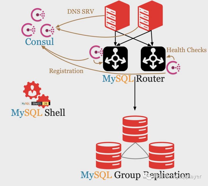 我还在想这事儿就应该由MySQL Connector来实现访问链路的Failover和Loadbalance, 现在有了DNS SRV的支持,router不必和应用端绑定部署,也可以省了VIP和负载均衡,MySQL InnoDB Cluster方案更加完善,配合consul等服务发现组件,更容易适配service mesh架构。