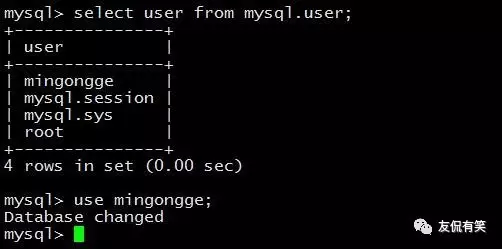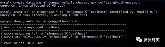 grant all on mingongge.* to 'mingongge'@'localhost' identified by 'mingongge';