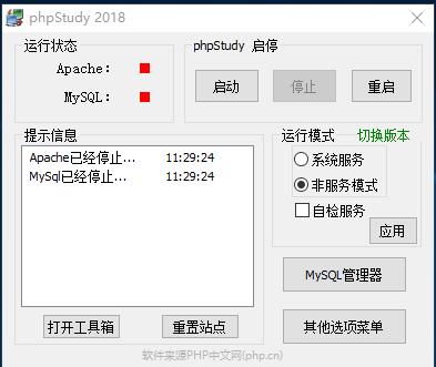 然后打开phpstudy,类似如下界面,