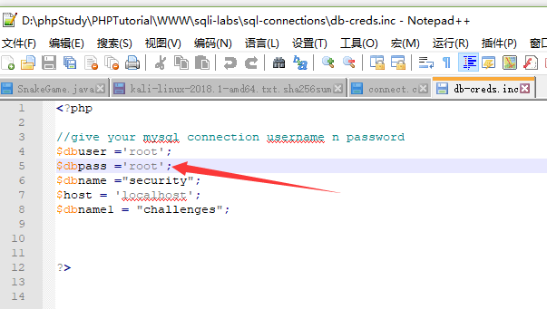 sql-connections/db-creds.inc文件,添加Mysql密码, 我这里设置成为
