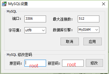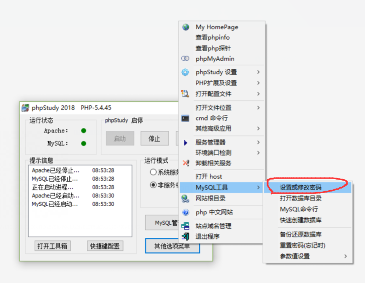 并且在phpstudy中修改MYSQL的密码为一致(默认密码为