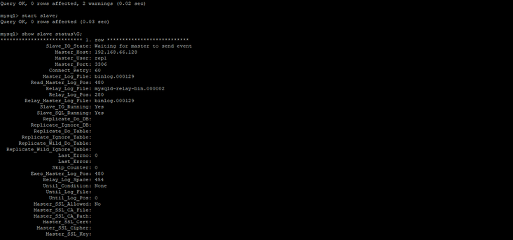 Slave_IO_Running: Yes Slave_SQL_Running: Yes