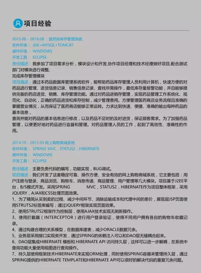 - 项目经验的描述,这个是每个技术互联网公司招聘重点看的地方,招聘企业想从你的项目经验里的描述中获得什么信息?他们真的在乎你的项目用在了那一行业?为这个行业提高了多少效率吗?实际上对方需要知道的无外乎以下几点: