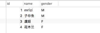 new_user = User(name='mrlizi', gender='man')