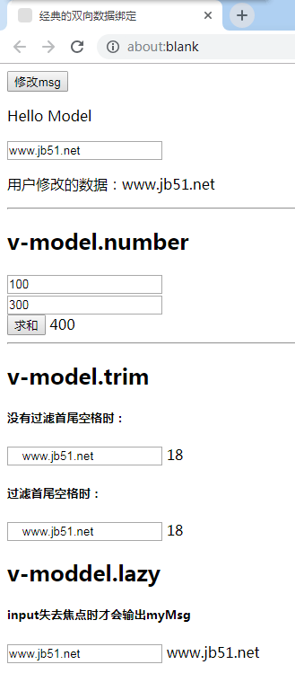 vue实现的双向数据绑定操作示例