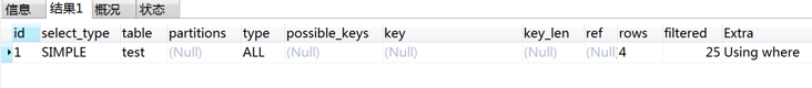 | Impossible where | 这个值强调了where语句会导致没有符合条件的行。 |