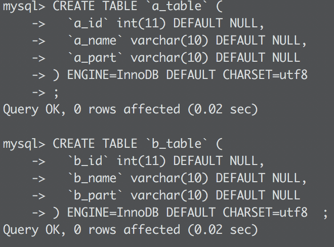 下面创建了a_table和b_table