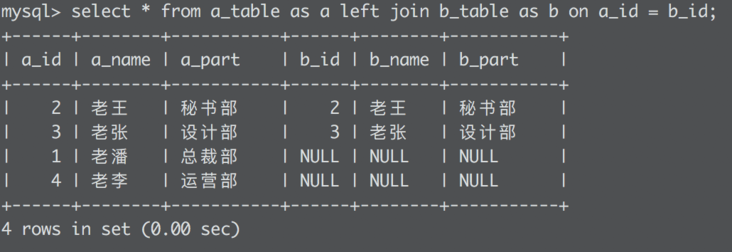 left join显示左表中的所有列,以及右表的对应列,右表中没有匹配的列全部是