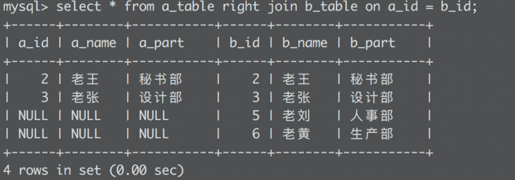right join显示右表中的所有列,以及左表的对应列,左表中没有匹配的列全部用