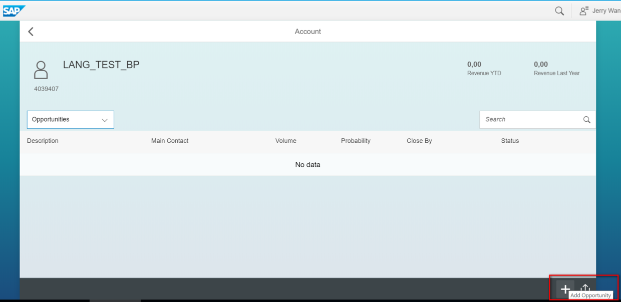 在SAP CRM Fiori的Account应用里,直接在Account页面创建商机: