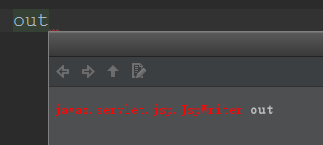 - out对象用于向浏览器输出数据,与之对应的是Servlet的PrintWriter对象。然而这个out对象的类型并不是PrintWriter,是JspWriter