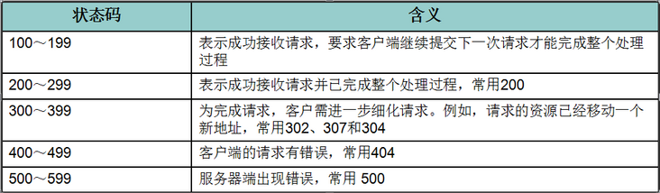 状态码用于表示服务器对请求的处理结果,它是一个三位的十进制数。响应状态码分为5类
