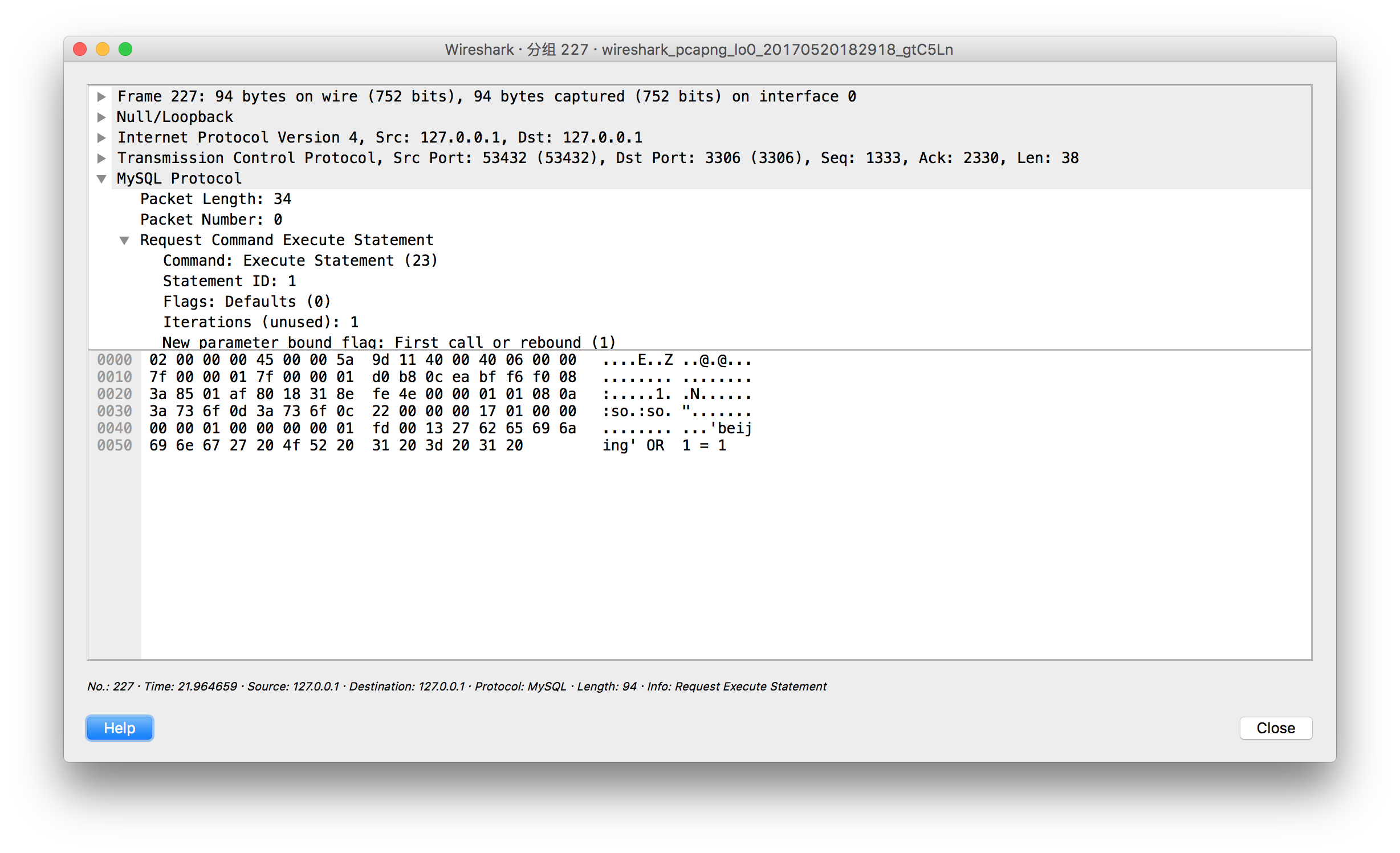 2017-05-20T10:39:39.410584Z 26 Prepare SELECT * FROM SU_City WHERE city_en_name = ? limit 3 2017-05-20T10:39:39.411715Z 26 Execute SELECT * FROM SU_City WHERE city_en_name = '\'beijing\' OR 1 = 1 ' limit 3 2017-05-20T10:39:39.412388Z 26 Execute SELECT * FROM SU_City WHERE city_en_name = '\'beijing\' OR 1 = 1 ' limit 3