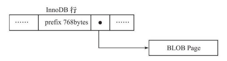 在 Antelope 两种行格式下,如果blob列值长度 768字节,那么前768字节依然在数据页,而剩余的则放在溢出页(off-page),如下图:
