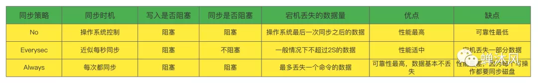 三种 AOF模式的特性可以总结为如下表格