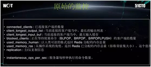 如上图所示,仍以 Redis 为例,我们能够监控的方面包括: