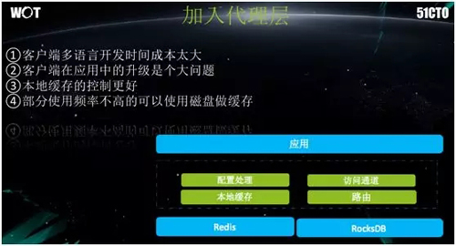 在 Cache 客户端做好之后,我们又碰到了新的问题:由于同程使用了包括 Java、.Net、Go,Node.js 等多种语言的开发模式,如果为每一种语言都准备和维护一套 Cache 的客户端的话,显然非常耗费人力。