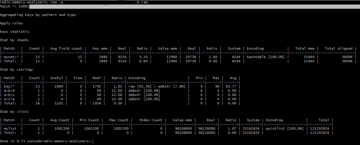 每一种模式都有自己的用途,您可以在RMA的自述文件(https://github.com/gamenet/redis-memory-analyzer/blob/master/README.rst)中获取进一步的详细信息.
