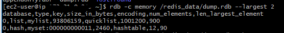获取前200个***键:rdb -c memory /var/redis/6379/dump.rdb –largest 200 -f memory.csv